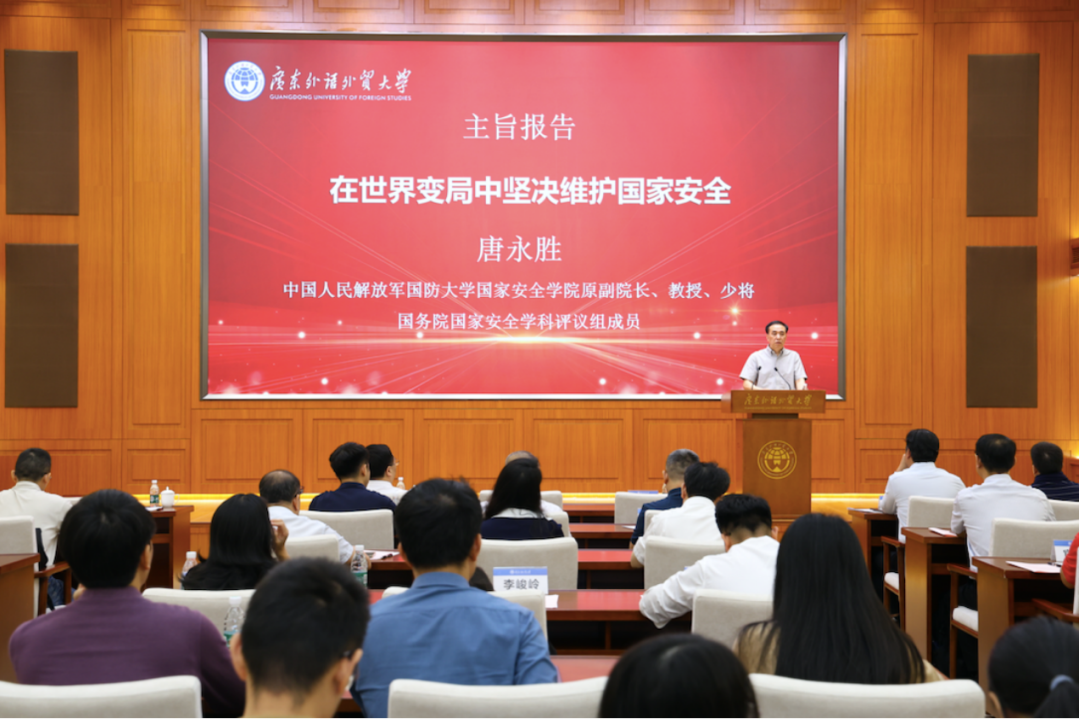 唐永胜指出,广东外语外贸大学国家安全研究院的成立对国家安全理论研究和国家安全学科专业建设及人才培养等增添了新活力,注入了新动能。广外具有鲜明的涉外特色,应充分发挥自身优势,结合区位特点,找准国家安全学建设的特色与定位,对如何统筹安全与发展关系进行深度理论探索,在学科建设上完成从传统学科向国家安全学交叉学科的思维转换;坚持问题导向,探索维护国家安全的有效机制体制。