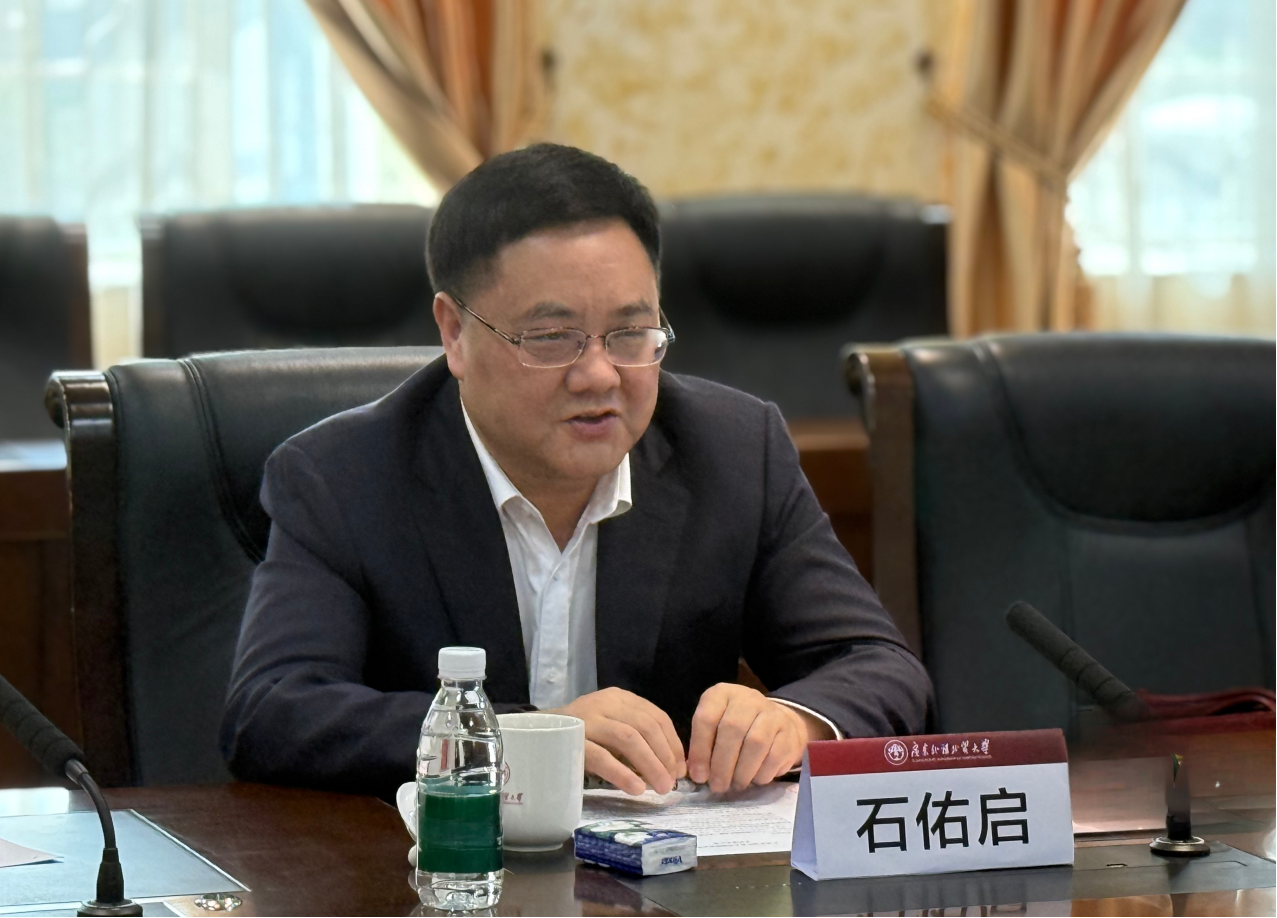石佑启对肖晞院长来访表示热烈欢迎和衷心感谢。他在讲话中强调,国家安全是民族复兴的根基,学科建设是高校服务国家战略需求的重要抓手。一是提高政治站位,以总体国家安全观为引领,锚定学科发展方向;二是凝练特色亮点,结合广外多语种、国际化优势,深度融入国家安全实践,构建跨领域研究体系;三是着力修炼内功,筑牢学科建设根基,一体推进科学研究和学科建设。